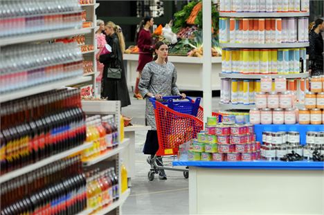 Come giovani casalinghe, le modelle si muovono tra le corsie dei prodotti culinari percorse da musica da discoteca.