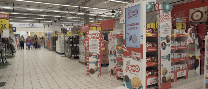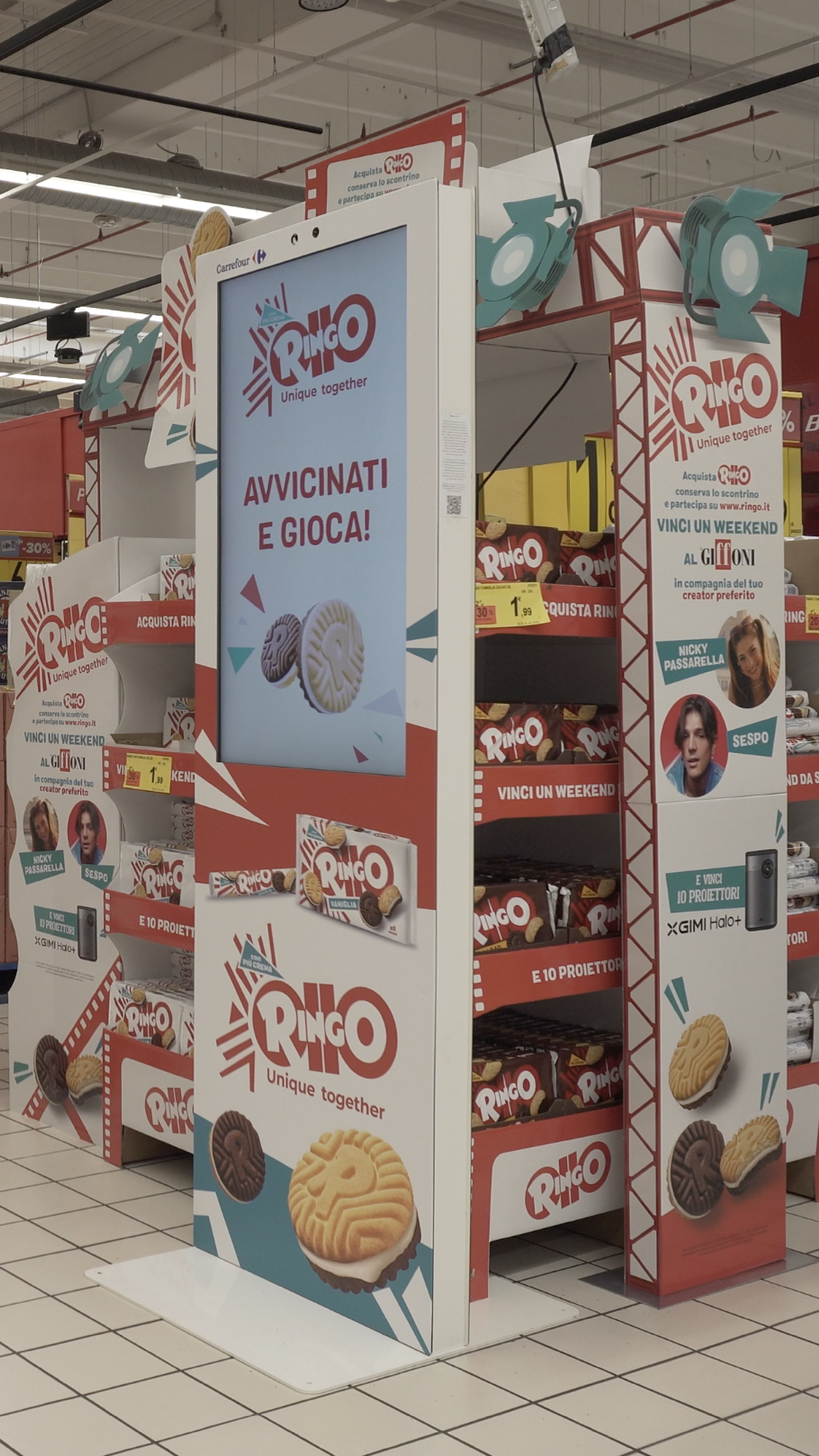 La soluzione proposta per il marchio Ringo, offre un’esperienza coinvolgente di consumer journey che unisce la nuova campagna di comunicazione “Unique together” di Ringo con un’esperienza di intrattenimento live all’interno dello store Carrefour. Grazie a schermi di nuova generazione dotati di sensoristica avanzata, Conversational Signage monitora il flusso di persone nell’area e raccoglie dati di utilizzo per offrire interazioni personalizzate e momenti di intrattenimento su misura per il target di riferimento, i messaggi di campagna e gli obiettivi del brand.