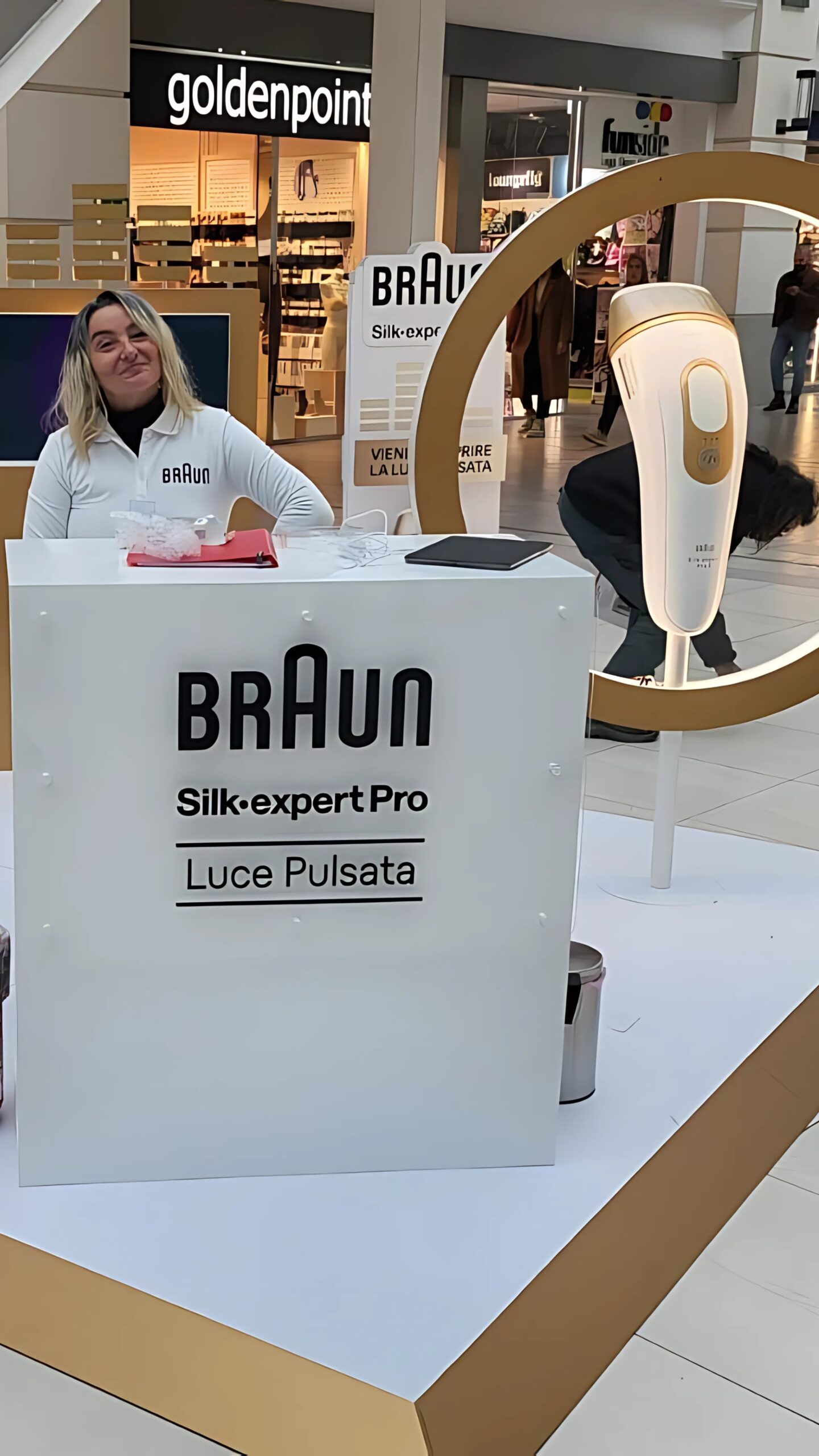 Il concept sviluppato parte dalla palette del prodotto elegante nei colori e prende ispirazione dall’elemento iconografico cardine di tutta la comunicazione del prodotto, ovvero il cerchio in oro, che diventa elemento strutturale, permettendo l’inserimento aereo dell’hero product. Per completare lo storytelling visuale del prodotto abbiamo implementato anche la tecnologia a luce pulsata, elevandola ad elemento di design.