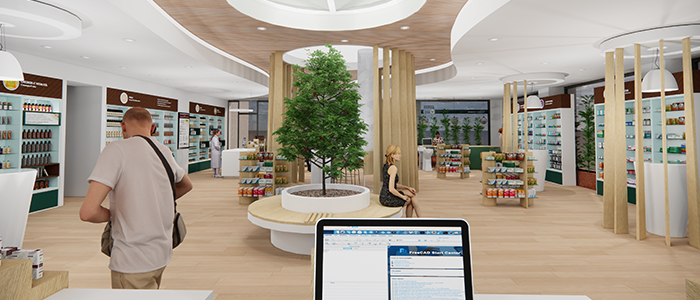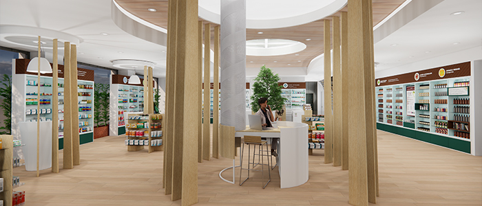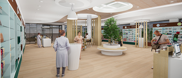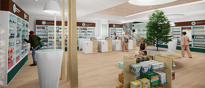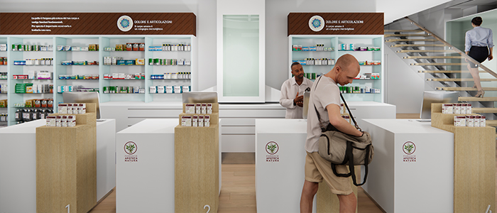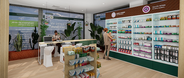 - Concept e interior design con attenzione a funzionalità, qualità degli arredi, certificazioni e sostenibilità per la realizzazione di una “Farmacia Green” (environmental branding)