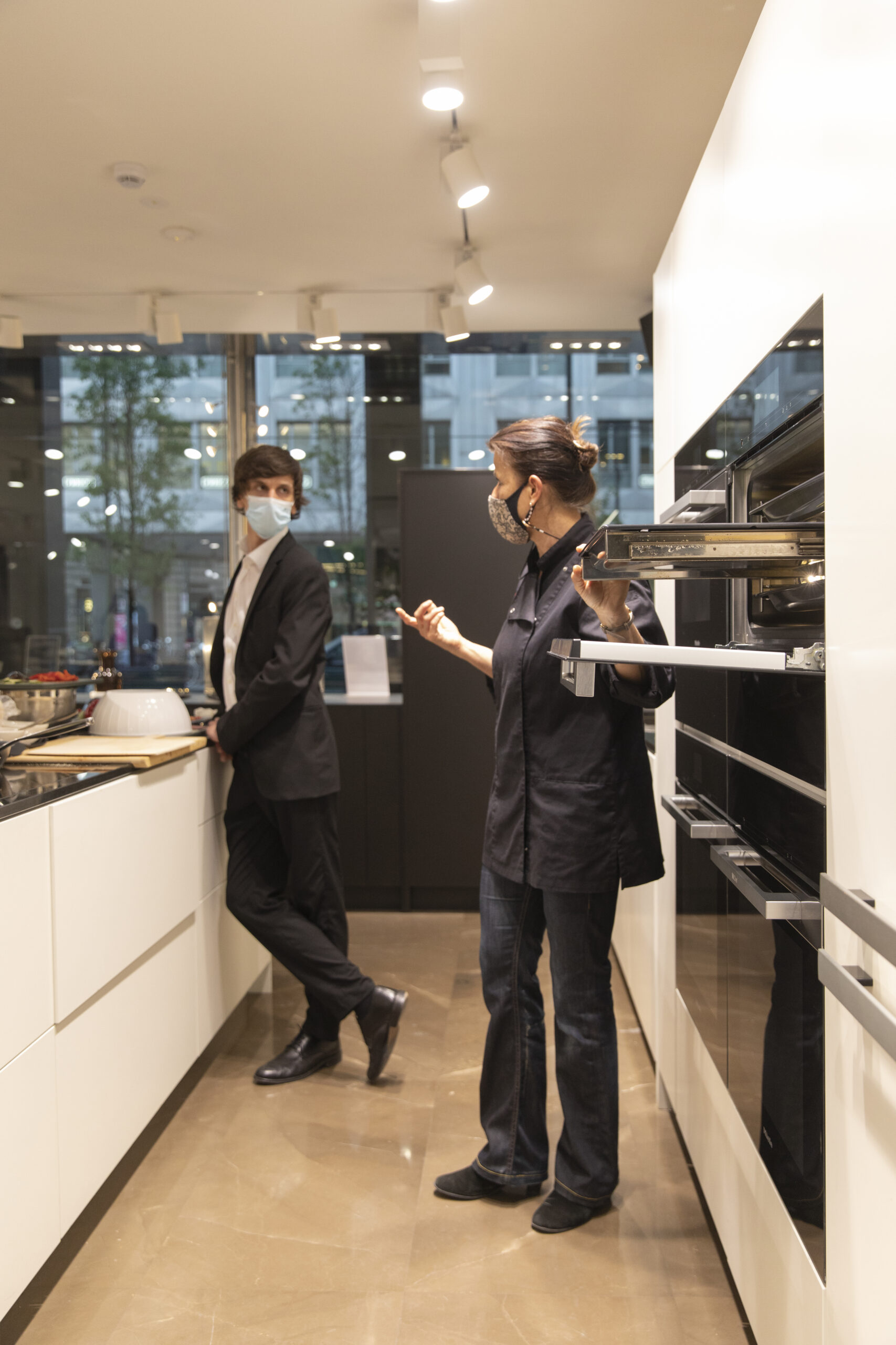 Il negozio dispone di una lavanderia dove si effettuano prove di lavaggio su vari tessuti e di una cucina dove si tengono eventi serali per testare le diverse modalità di cottura offerte dai forni, come quella a vapore o sottovuoto, e dai piani cottura.