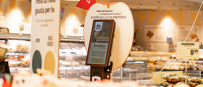 La Promoter Digitale SellOutVision rappresenta una soluzione all’avanguardia di In Store Promotion che offre un’esperienza digitale tangibile nel Retail. I corner promozionali interattivi, collocati strategicamente accanto alle gondole, trasformano il processo d’acquisto in un’opportunità coinvolgente, attirando il cliente con sensori di prossimità, speaker audio e video. Un software su misura orienta l’utente alla scoperta dei valori del brand; il monitor touch screen consente di esplorare i prodotti, generare ricette o coupon; gli scaffali integrati consentono di aumentare il sell out dei prodotti fino al 1500%. I totem SellOutVision attirano l’attenzione e garantiscono un’esperienza utente di alta qualità, producendo risultati eccellenti di interazione con i consumatori, evidenziati da metriche concrete per ogni campagna.