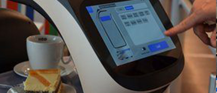 La compagnia di navigazione tedesca AG EMS ha installato un robot sul traghetto Borkum “MS Ostfriesland” che serve caffè, tè e dolci agli ospiti. Il personale di servizio prende gli ordini dei passeggeri e “Bella Bot”, che può trasportare fino a 40 chilogrammi, consegna i pasti e le bevande su quattro vassoi. Una volta che il personale ha inserito il numero del tavolo tramite un display, “Bella Bot” elabora il percorso migliore e quindi trasporta i vassoi pesanti a destinazione.