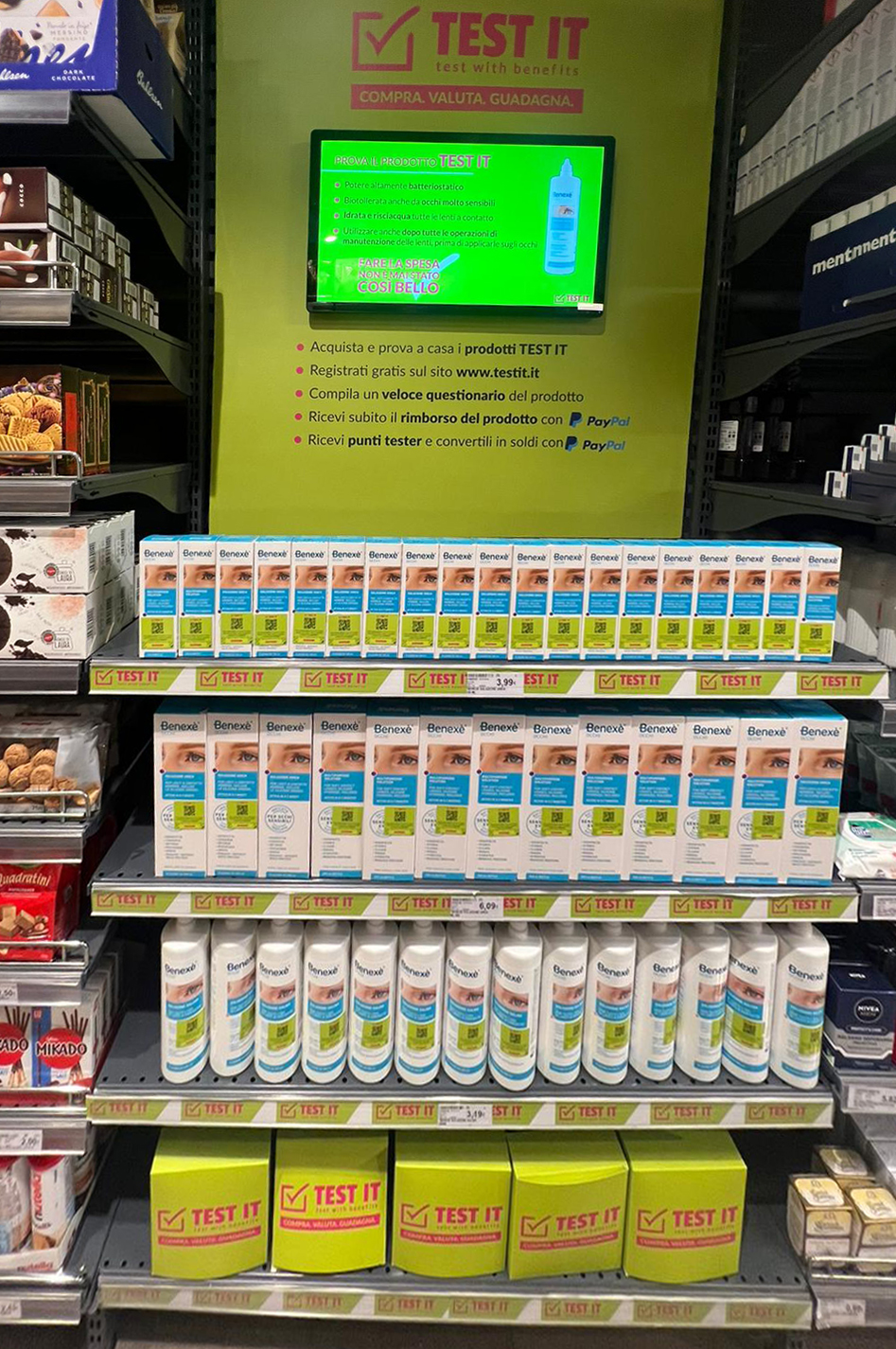 TESTIT ha sviluppato un metodo che permette di raccogliere i feedback dei clienti veri in reali negozi. L’esperienza in fase d’acquisto riporterà così una valutazione dei consumatori più autentica e vicino alla reale percezione. I prodotti da testare vengono presentati su postazioni esclusive e con relativa comunicazione. Tutti clienti possono acquistare, provare i prodotti, compilare una survey sulla piattaforma TESTIT e ricevere il cashback previsto. Il team di TESTIT, esperti della GDO & Data Analysis, garantisce dati di qualità. L’obiettivo è la consegna dei risultati delle survey e di KPI commerciali per perfezionare i prodotti e il loro successo sul mercato. Ad oggi sono attivi 3 TEST IT Lab continuativi e, grazie ai “TEMPORARY” TESTIT LAB, non ci sono limiti, possiamo attivare i progetti in qualsiasi location e su tutti prodotti e servizi.