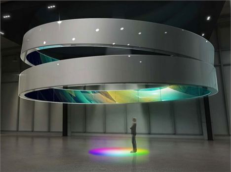 Due strutture circolari sospese in aria al cui centro, a terra, è proiettato l’intero spettro dei colori. E’ l’installazione multimediale che invita a interagire con la tecnologia Samsung SUHD, abbandonando il modello convenzionale di visione dei contenuti. Posizionandosi su una di queste tonalità infatti si influenza in tempo reale le immagini sugli schermi, che richiamano il colore scelto. Un modo per presentare le innovazioni della TV SUHD Samsung: la grande resa cromatica grazie a una tecnologia basata su nano-cristalli e un sistema aperto che permette di personalizzare i contenuti.