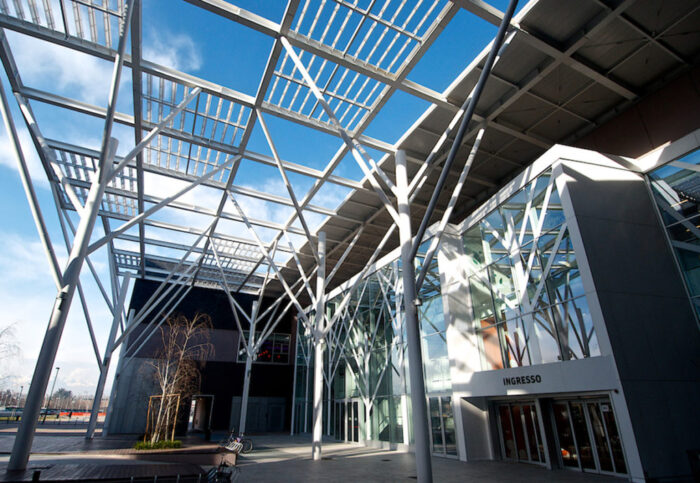 Il centro commerciale si inserisce in una delle aree residenziali di Collegno nate nell’ambito del progetto di riqualificazione urbana degli spazi dell’ex complesso industriale Elbi.