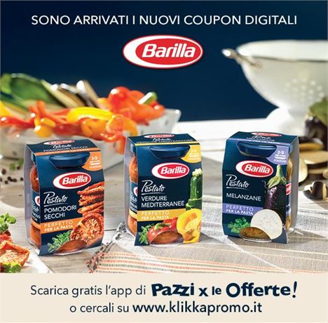 Ai coupon dedicati esclusivamente ai Pestati Barilla se ne affiancano altri di acquisto combinato con le linee di pasta “Integrale” e “Le Specialità” – entrambi del valore di 1 euro – con lo scopo di incentivare il cross-sell e offrire al consumatore l’idea di un piatto completo, genuino e di qualità.