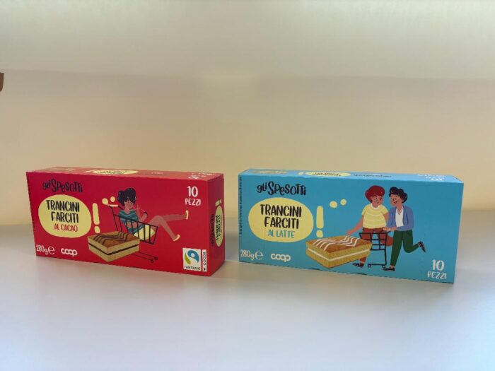 Sugli scaffali dei supermercati e ipermercati Coop sono in vendita due nuove confezioni multiple di merendine della linea Spesotti – i Trancini farciti al latte e al cacao – caratterizzate da una scatola in cartoncino, che sostituisce il tradizionale sacchetto in flow pack a base plastica. A credere in questo progetto l’azienda Freddi Dolciaria, uno dei maggiori produttori internazionali di merendine, roll e torte a base di Pan di Spagna. La sede si trova a Castiglione delle Stiviere, in provincia di Mantova, tra i poli industriali alimentari più importanti d’Italia. L’azienda ha scelto come partner per il nuovo imballaggio Smurfit Westrock Italia, multinazionale leader nel settore del packaging a base carta.