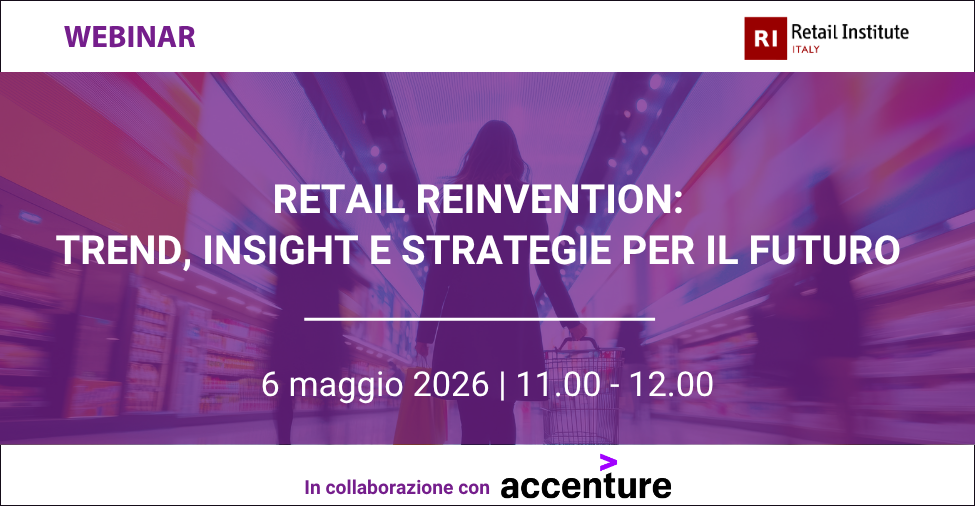 Il 6 maggio, dalle 11.00 alle 12.00, si terrà il webinar in collaborazione con Accenture “Retail Reinvention: trend, insight e strategie per il futuro”.