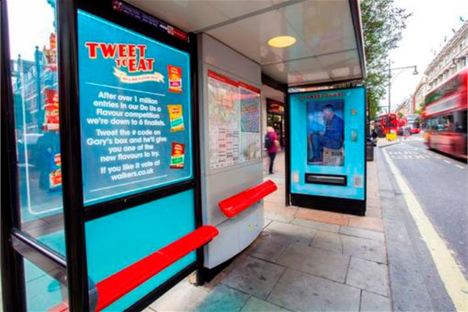 Aspettare il bus a Londra si fà più appetitoso: Frito-Lay Walkers, noto brand di patatine, ha convertito le pensiline del trasporto urbano in distributori automatici che distrubuiscono ai passanti sacchetti delle gustose chips in cambio dell’invio di tweet.