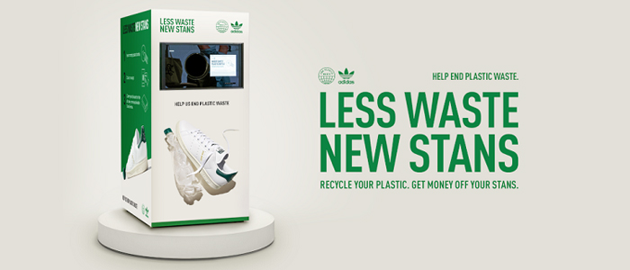 Il produttore di abbigliamento sportivo Adidas ha collaborato con l’agenzia creativa Mojo Supermarket per lanciare una campagna che permette ai clienti di pagare un nuovo paio di Stan Smiths con bottiglie di plastica. Per permettere questo, Adidas ha introdotto delle macchine per il riciclaggio nei suoi negozi di punta. I clienti possono alimentarle con bottiglie di plastica per ricevere coupon e acquistare così delle Stan Smiths, che sono parzialmente fatte utilizzando bottiglie riciclate. La campagna mira anche a incoraggiare in generale i clienti a riciclare.