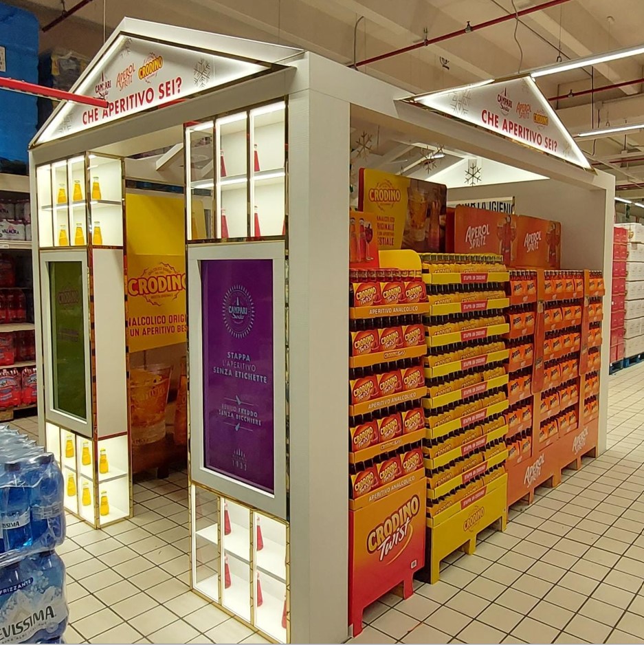 Campari aveva l’obiettivo di creare, nel periodo Natalizio, una visibilità premium e di alto impatto per l’esposizione dei brand più iconici per l’aperitivo, Aperol Spritz, Campari Soda e Crodino, per incentivarne il consumo a casa.