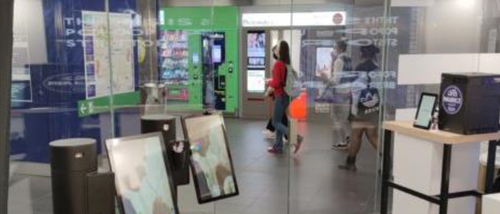 Le vetrine sono dotate di schermi in cui i brand possono pubblicizzare i prodotti. All’interno, ci sono tablet con la tecnologia dell’azienda e i clienti possono selezionare campioni con un solo clic. Un piccolo tubo spruzza quindi la fragranza del prodotto scelto.