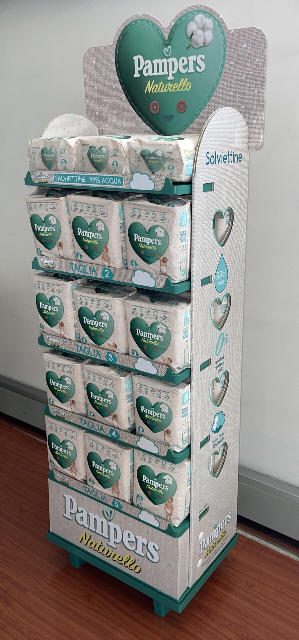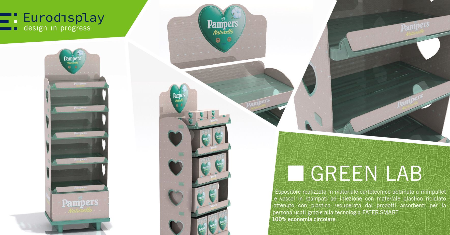 Come L’Araba Fenice rinasce dalle proprie ceneri, i polimeri contenuti nei pannolini usati rientrano nel ciclo produttivo dando vita ai componenti plastici utilizzati negli espositori Pampers Naturello. Tutto questo grazie a FaterSMART (Gruppo FATER) che ha messo a punto un sistema per trasformare i prodotti assorbenti monouso in imballaggi e componenti industriali.