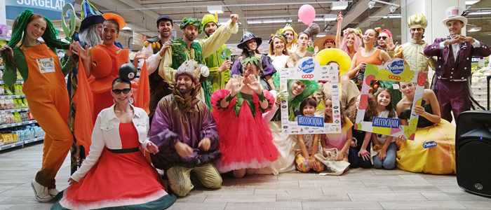Frutta e verdura impersonate da artisti animatori, prendono vita ognuno con il proprio carattere nonché con un costume di alta sartoria realizzato ad hoc, per coinvolgere le persone in un’esperienza di engagement completamente inedita nel settore dell’ortofrutta!