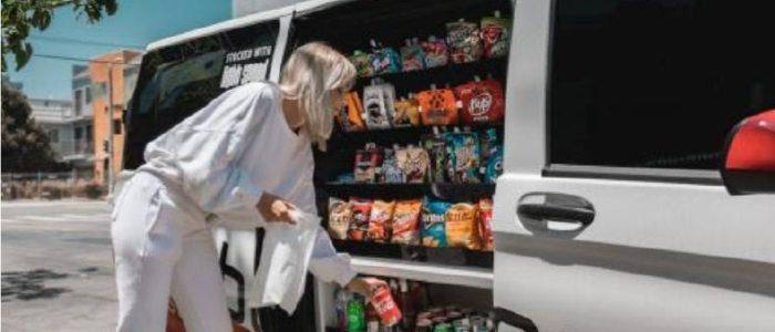 Fanno acquisti aprendo la porta del furgone con l’app. Il sistema traccia quali articoli vengono comprati e poi crea automaticamente un fattura che viene dedotta dal conto bancario collegato.