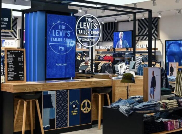 Levi’s ha introdotto un nuovo concept store chiamato “NextGen Indigo”, che unisce tecnologie digitali, personalizzazione ed elementi locali. Schermi LED interattivi mostrano in tempo reale informazioni sui prodotti, consigli di stile e disponibilità, aiutando i clienti nelle loro scelte; i negozi inoltre sono dotati di camerini moderni e di Tailor Shops, dove i jeans possono essere personalizzati con ricami, patch e modifiche su misura. Il design degli spazi è adattato al contesto locale: a Kyoto, ad esempio, sono presenti lanterne tradizionali, mentre nel Sud-Est asiatico si utilizzano tessuti adatti ai climi caldi; in questo modo l’esperienza di acquisto viene modellata sulle esigenze regionali.