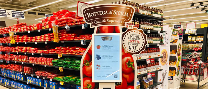 La Promoter Digitale SellOutVision rappresenta una soluzione all’avanguardia di In Store Promotion che offre un’esperienza digitale tangibile nel Retail. I corner promozionali interattivi, collocati strategicamente accanto alle gondole, trasformano il processo d’acquisto in un’opportunità coinvolgente, attirando il cliente con sensori di prossimità, speaker audio e video. Un software su misura orienta l’utente alla scoperta dei valori del brand; il monitor touch screen consente di esplorare i prodotti, generare ricette o coupon; gli scaffali integrati consentono di aumentare il sell out dei prodotti fino al 1500%. I totem SellOutVision attirano l’attenzione e garantiscono un’esperienza utente di alta qualità, producendo risultati eccellenti di interazione con i consumatori, evidenziati da metriche concrete per ogni campagna.