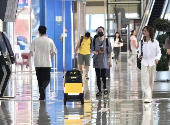 In collaborazione con l’Aeroporto di Shenzhen, l’azienda cinese Meituan ha introdotto piccoli robot per le consegne che portano il cibo direttamente ai passeggeri in attesa nell’area partenze. I carrelli si muovono in autonomia attraverso il terminal, raccolgono gli ordini da partner come Starbucks e KFC e consegnano le buste al posto indicato.