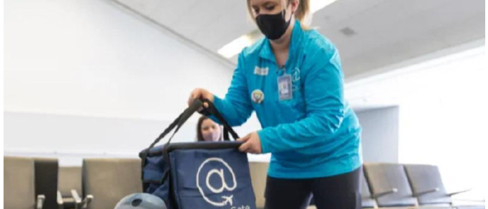 ROBOT DELIVERS FOOD TO AIRPORT DINERS