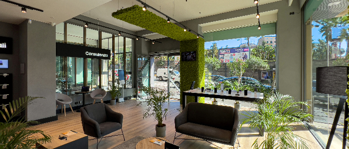 Il punto vendita si presenta rinnovato, adesso più premium e con un’identità estetica precisa, in cui, oltre all’assistenza per i prodotti di telefonia è possibile acquistare device, giocare, lavorare, vedere un film o semplicemente “rilassarsi” in attesa di essere assistiti.