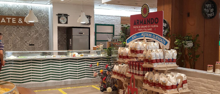 Con l’intento di sviluppare per la prima volta materiali pop durevoli, la De Matteis Agroalimentare ci ha scelti per l’ideazione di una struttura WOW che riuscisse a esprimere efficacemente la «Cura del Grano», concept e filosofia produttiva alla base del brand Armando.