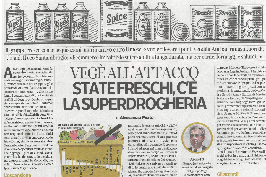 Addio agli ipermercati, torna la superdrogheria. Specializzata nel fresco, «anzi, freschissimo» dice Giorgio Santambrogio, amministratore delegato del Gruppo Vegè e presidente di Adm, l’Associazione di distribuzione moderna. «Che se ne fanno …