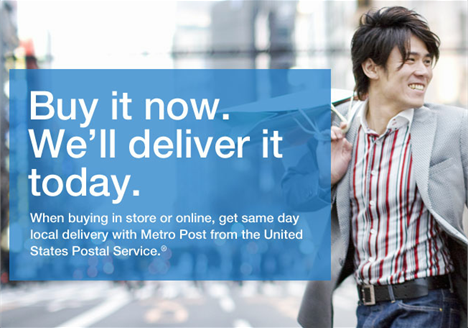 Target ha anche in programma di estendere la spedizione standard da 136 negozi a 38 mercati quest’anno. Sfruttando la rete negozi come centri di evasione, è possibile offrire spedizione standard più veloce, in media in uno o due giorni. Target è una delle numerose compagnia che stanno sperimentando la same-day delivery di ordini online.