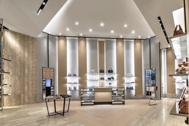 Il nuovo flagship è caratterizzato da un arredamento elegante e lineare, con specchi d’argento, pannelli in pelle di vacchetta che ricoprono gli espositori in acciaio, divani in pelle marrone scuro e pavimento in marmo. Per celebrare l’apertura, Tod’s ha realizzato una speciale collezione di gommini nei sette colori della sabbia dei sette Emirati: rosso ruggine, blu oceano, cipria, crema, sabbia, nero e giallo ocra.