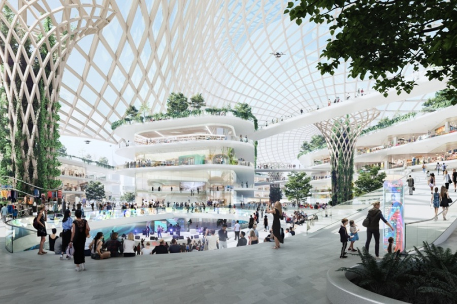 Ci saranno giardini pensili sensoriali e passerelle dotate di intelligenza artificiale all’interno di un ambiente concepito per dare sempre più valore all’esperienza, che evolverà a un livello superiore, al tempo libero, al benessere e ai rapporti umani.